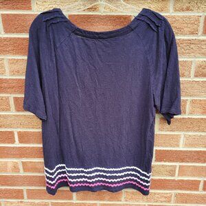 Talbots Short Sleeve Tee Shirt Women's Size Large 100% Cotton Navy Blue