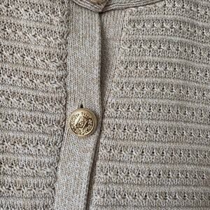 Talbots Short Sleeve Textured Knit Cotton Cardigan Sweater Gold Tone Buttons M