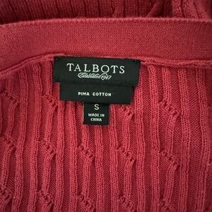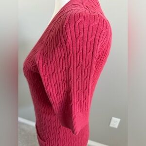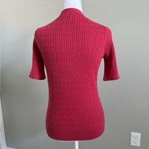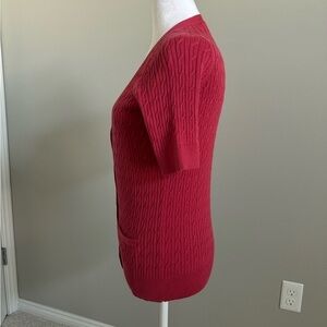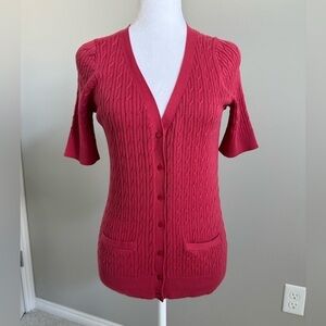Talbots Short Sleeve V-Neck Cable Knit Cardigan Sweater Pink Size Small