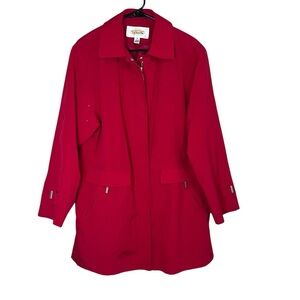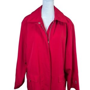 Talbots Short Trench Coat Classic Red Rain Jacket Lined Washable Packable Size M
