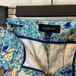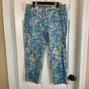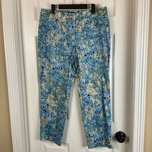 Talbots Signature 12 Blue Water Color Floral Pant Mid Rise Ankle Career Casual U3