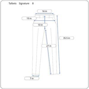 Elevate your wardrobe with these Talbots Signature Ankle Pants. These pants are perfect for any occasion, whether it's casual or business. The flat front and straight leg style provide a flattering fit, while the herringbone pattern adds a touch of bohemian vibe to your outfit. The pants feature a zip closure, pockets, and a mid-rise that sits comfortably on the waist. Made of a blend of polyester, spandex, cotton, and cotton blend, these pants are stretchy and comfortable to wear. They are machine washable, making them easy to care for. These pants come in a size 8 and have an inseam of 27 inches. Don't miss out on the opportunity to add these versatile pants to your wardrobe today!