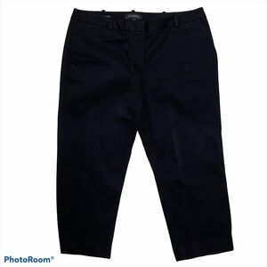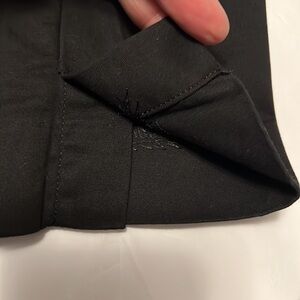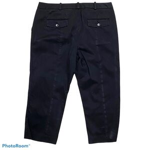 Classics black cotton cropped pants with spandex for the perfect amount of stretch. Features front pockets, back flap & button pockets, back seams down the legs and slits at each hem. 22” inseam. A staple for any closet!
