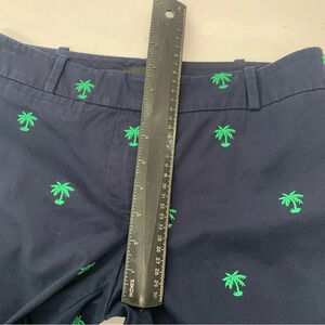 Talbots Signature Pants Size 2 Navy Blue Embroidered Green Palm Trees Novelty