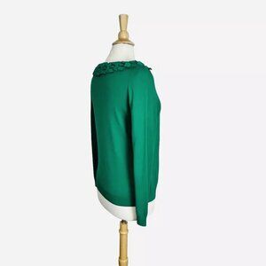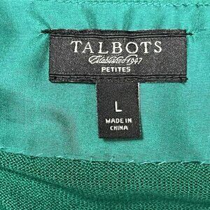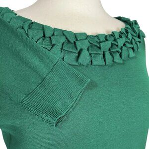 Talbots Silk Blend Sweater Petites L Kelly Green Rolled Ruffle Thin Knit