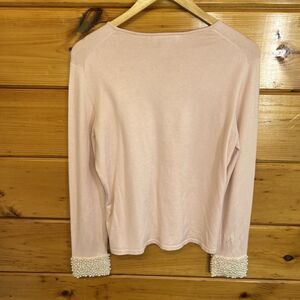 Talbots Silk Cashmere Long Sleeve Womens Pullover with Pearls on Cuffs PM
