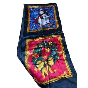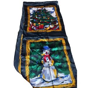 Talbot's Silk Christmas Fashion Scarf 51x10" Snowman Tree Penguin Wreath EUC