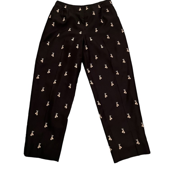 Talbots Silk Embroidered Pants Crop High Rise Black with Gold Tassels 6 Petite