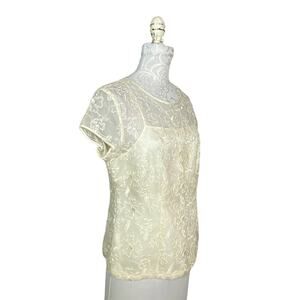 Talbots Silk Embroidered Sheer Top with Cami Cream Women's 6 NWT