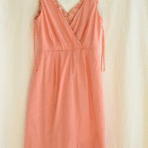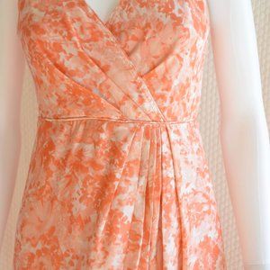 Talbots size 2P silk faux wrap sleeveless dress with watercolor floral print in shades of pink or orange - salmon and peach. Deep v-neck and slight empire waist make for a very flattering fit. In excellent condition, no stains, rips or tears. Fully lined and hem has been let out and left unfinished but no one would notice! Bust 16", waist 13", length shoulder to hem 38". Shell 58% silk, 42% cotton and lining is 100% cotton. Ships super fast from a clean, smoke-free, minimal fragrance home. Offers welcome!