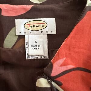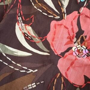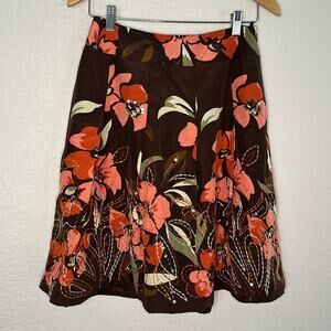 Talbots Silk Full Skirt Brown Embellished Embroidered Coral Floral Academia Twee