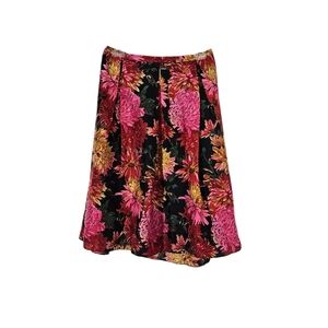 Talbots Silk A-line / fit & flare skirt in pink, red and golden tan tone large floral print. Zipper closure. Beautiful Fall tones, that can easily be worn all year round. Excellent condition.