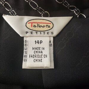 Talbots Silk Skirt Petites 14 P Lined Black White Chain Print
