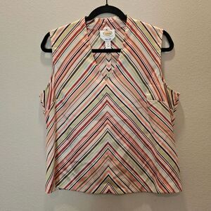 NWOT Talbots Silk Striped V-Neck Top Size 14