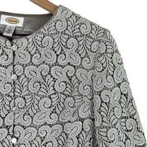 Vintage Talbots Silver Lace Cardigan Blazer Special Occasion Dress Jacket, Size 6