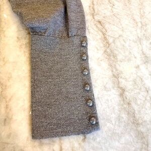 Talbots Silver Metallic Wool Blend Long Sleeve Sweater with Buttons; Women's Med