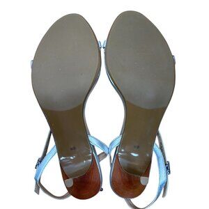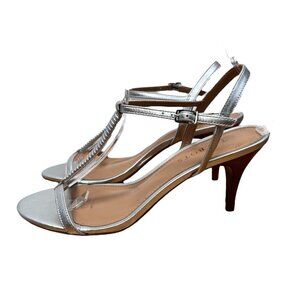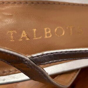 Talbots Silver Open Toe Slingback T-Strap Size 9B Strappy Heel Sandal Party Brun