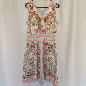 Talbots Size 10 A Line Italy Bistro Scenic Villa Fit&Flare Cotton Dress