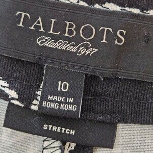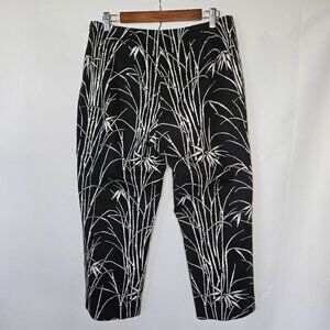 Talbots Size 10 Black White Bamboo Print Pedal Pusher Capris Pants Stretch