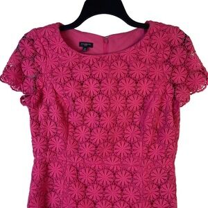 Talbots Size 10 Petite Larosa Pink Lace Crochet Sheath Dress 60's Style Chic