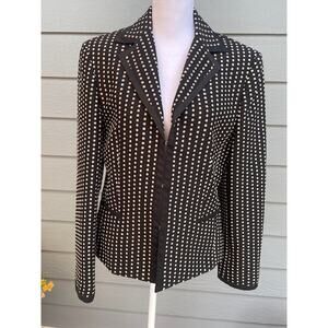 Talbots Size 10 Women's Black Blazer with Tan Polka Dots Hook Closure Wool Blend