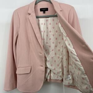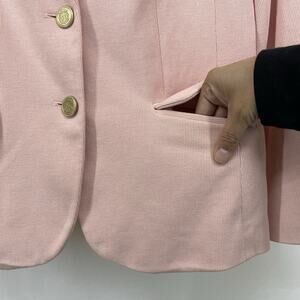 Talbots Size 10P Sweater Knit Blazer Light baby Pink Gold Two Button Pockets
