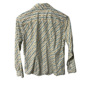 The Talbots Size 10P Wrinkle Resistant Button Down Equestrian Blouse is a stylish and practical tops for women who are petites. Made from a blend of spandex and cotton, this blouse features a long sleeve and a beige color. The distinctive equestrian pattern adds a touch of elegance, while the wrinkle-resistant fabric makes it easy to care for. Perfect for any casual or dressy occasion, this blouse is a versatile addition to any wardrobe.