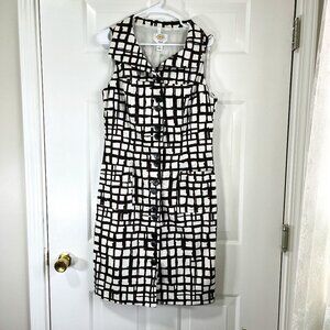 Talbots Size 12 Corduroy Stretch Button Down Front Midi Dress Geometric White