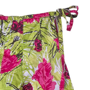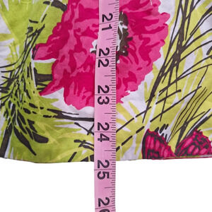 Talbots Size 12 Green Red Floral Butterfly Pleated Side Zip Cotton A-Line Skirt