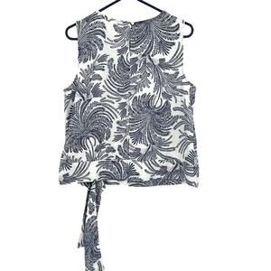 Talbots Size 14 Petite Tank Blue White Floral Leaves Sleeveless Waist Tie Round