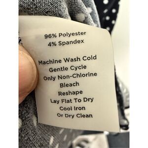 Classic and feminine, this Talbots black polka dot dress features a flattering twist-front detail, V-neckline, and 3/4 sleeves. Made with a comfortable, stretchy knit (96% polyester, 4% spandex), it offers ease of movement with a softly flared midi-length silhouette. Perfect for work, date night, or casual gatherings.