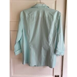 Talbots Size 16 Women's B-Neck Button Front 3/4 Sleeves Cotton Aqua Shirt