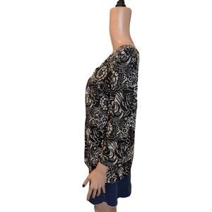 Talbots Size 1X (marked 3X) Black Cream Floral Workwear Classic Stretch Top