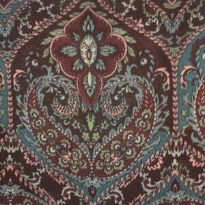 Talbots fully lined size 2 pencil skirt wine pink green teal flowers and paisley print on chocolate brown background, zip back wide band, waist 14 1/2 inches seam to seam, length 23 inches, excellent condition