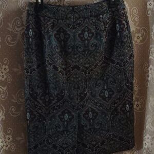 Talbot's Size 2 lined Blue Pink Teal Floral and Paisley pencil skirt zip back