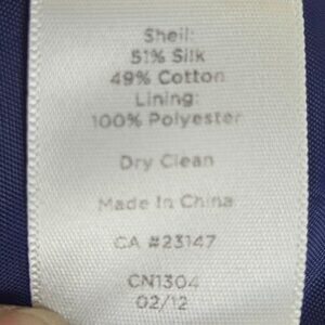Materials: Shell 51% Silk 49% Cotton; Lining 100% Polyester