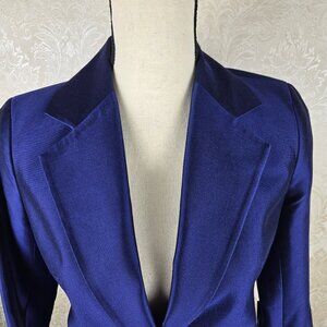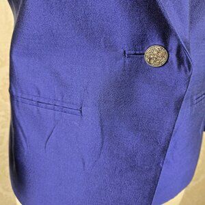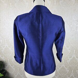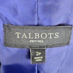 Talbots Size 2P Blue Blazer Silk/Cotton Blend 3/4 Cuffed Sleeve 1 Button Closure