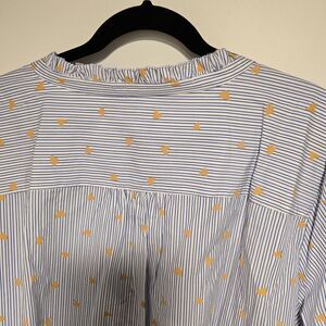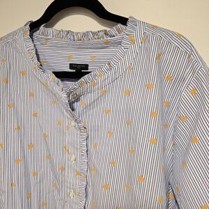 Talbots Size 3X Ruffle Band Collar Poplin Button Down Stripe Gold Heart Cotton