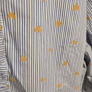 Talbots Ruffle Band Collar Poplin Top. Heart and Stripe pattern. Cotton button Down Blouse.