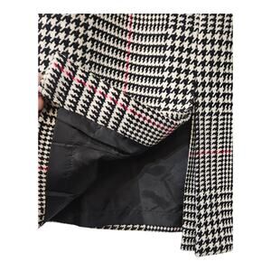This Talbots Size 4 skirt is made from 100% wool with a houndstooth pattern, perfect for a professional career or business outfit. The skirt features a lined front with a kick slit and intricate zip-slide hood and inside button closure. Made in the USA, this multicolored skirt is ideal for the winter, fall, and spring seasons, adding a touch of American city style to your wardrobe.