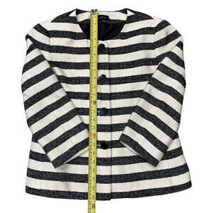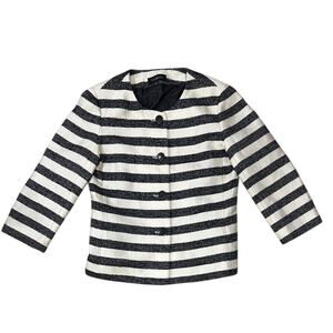 Talbots Size 4 Women's Four Button Blazer Jacket White Black Stripes Career EUC