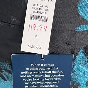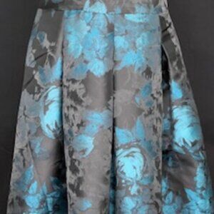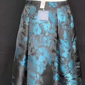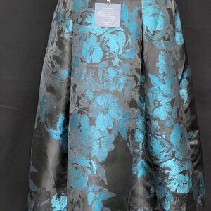 Elegant RSVP by Talbots Brocade Skirt. NWT. Size 6. Black and teal (blue/green) brocade fabric. Floral design. Fully lined. Side zipper. Length (approx.) 24 inches. Dry clean.