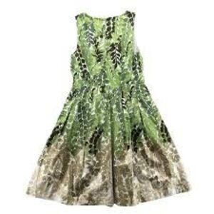 Talbots Size 6 Petite Faux Wrap Sleeveless A-Line Dress Green Ombre Leaf Print