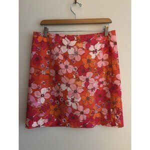 Talbots Size 8 Colorful Floral Pink Print Stretch Cotton Pencil Skirt Tropical