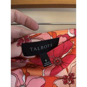 Talbots Size 8 Floral Pink Print Stretch Cotton Pencil Skirt.