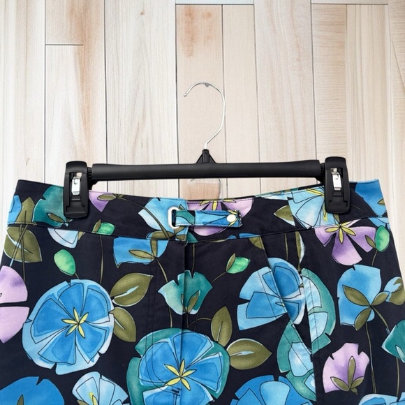 Talbots Size 8 Floral Pencil Skirt Blue Black fFloral Stretch Cotton Work