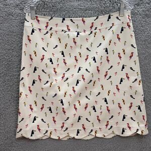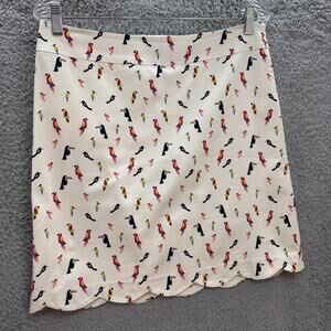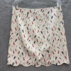 Talbots Size 8 Petite Pencil Skirt Bird Design Colorful Scalloped Hem Fun Beach