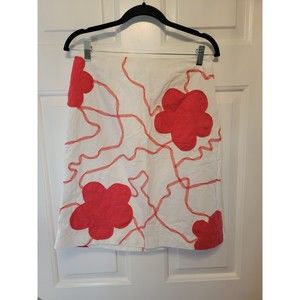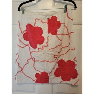 Talbots Size 8 White Pink Blossom Skirt with Soutache Trim
