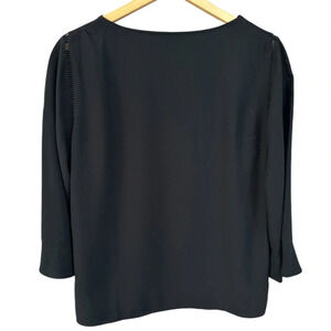 Talbots Size L Black Blouse Shirt With Lace Insets, Zip Side and 3/4 Sleeves
