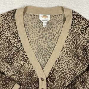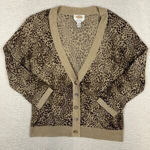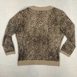 Talbots Size L Cardigan Silk Cashmere Lightweight Sweater Animal Print Classy TF